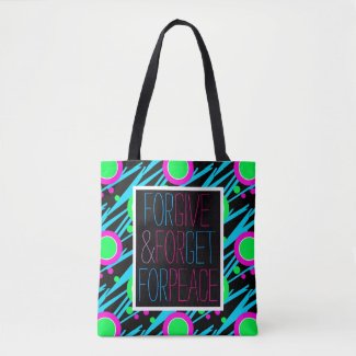 Forgive and Forget For Peace - retro graffiti framed all over print tote bag: Because screw your hate. It's party time.